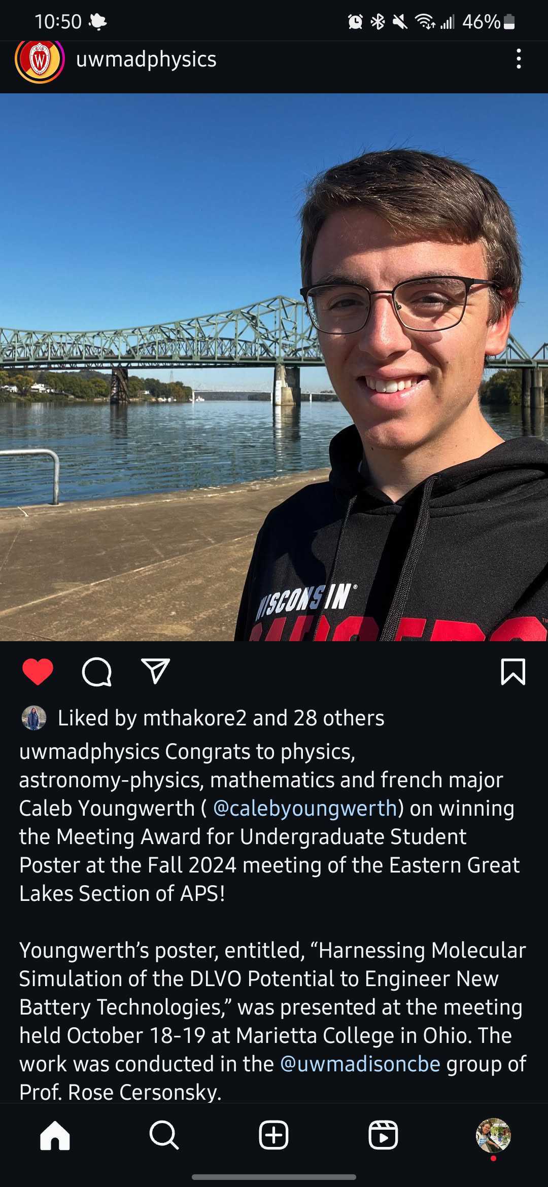 Some pictures from Caleb Youngwerth’s trip to the American Physics Society - Eastern Great Lakes Section. He won the best-undergraduate poster award! (October 2024)